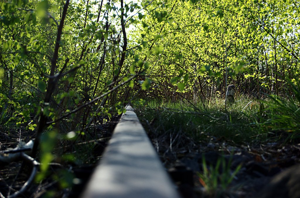 Die Schienen verschwinden in einem Wirrwar aus Ästen und Blättern. (18.04.2009)
