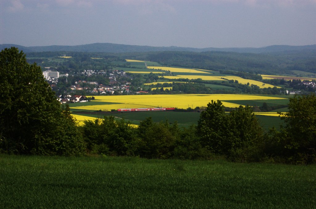 Auf dem weiteren Weg Richtung Frankfurt säumen bei Bad Camberg blühende Rapsfelder die Ränder der Strecke. (01.05.2009)